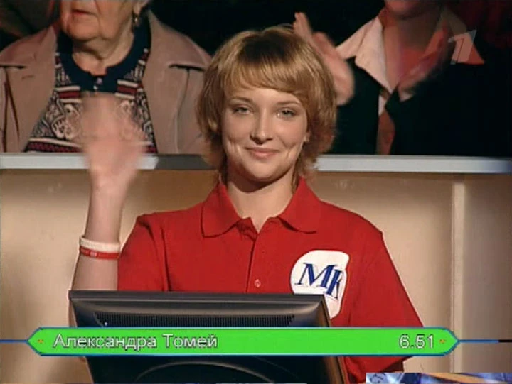 Alexandra Tomey was contestant, who appeared on an episode of Kto khochet stat' millionerom? on October 21, 2007, took a money and won 25,000 rubles.