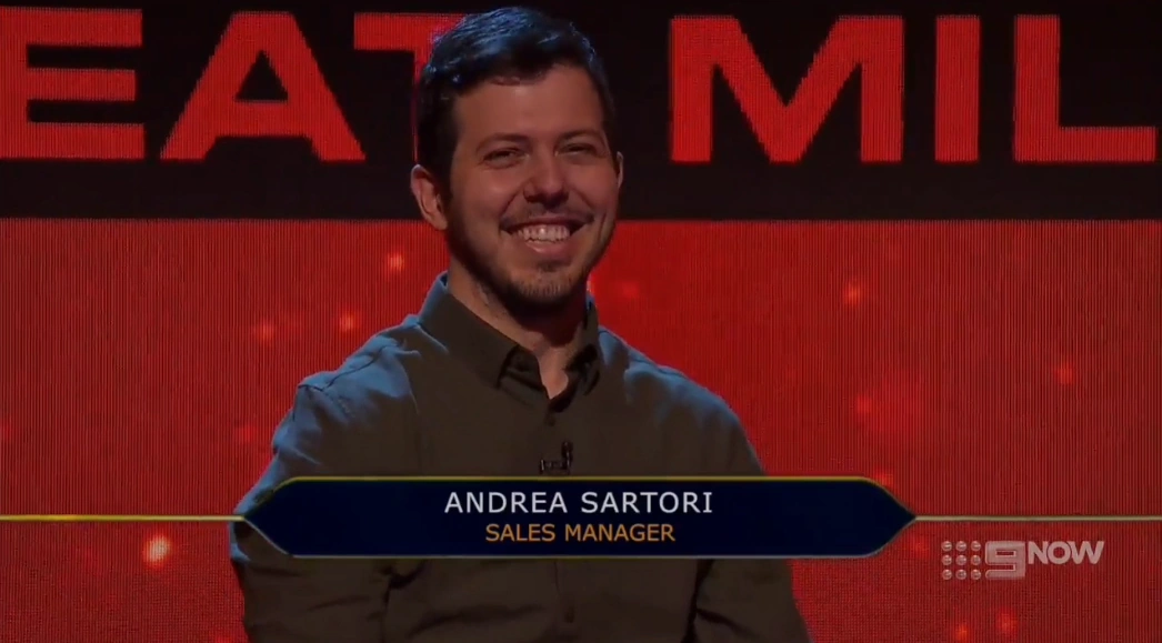 Andrea Sartori, was contestant, appeared on the 2021 season of Millionaire Hot Seat on 23rd November 2021 and went away with nothing.