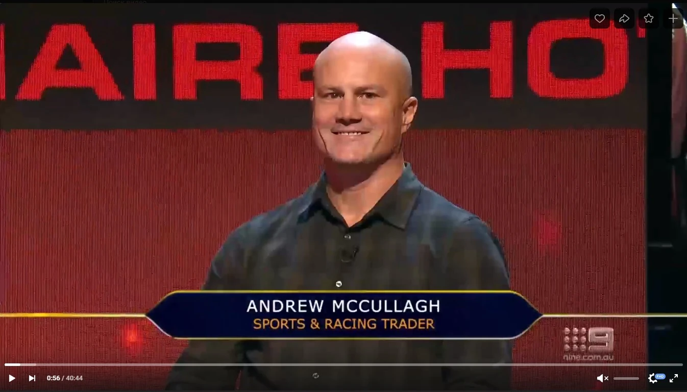 Andrew McCullagh, was contestant, appeared on the 2023 season of Millionaire Hot Seat on November 20, 2023 and went away with nothing.