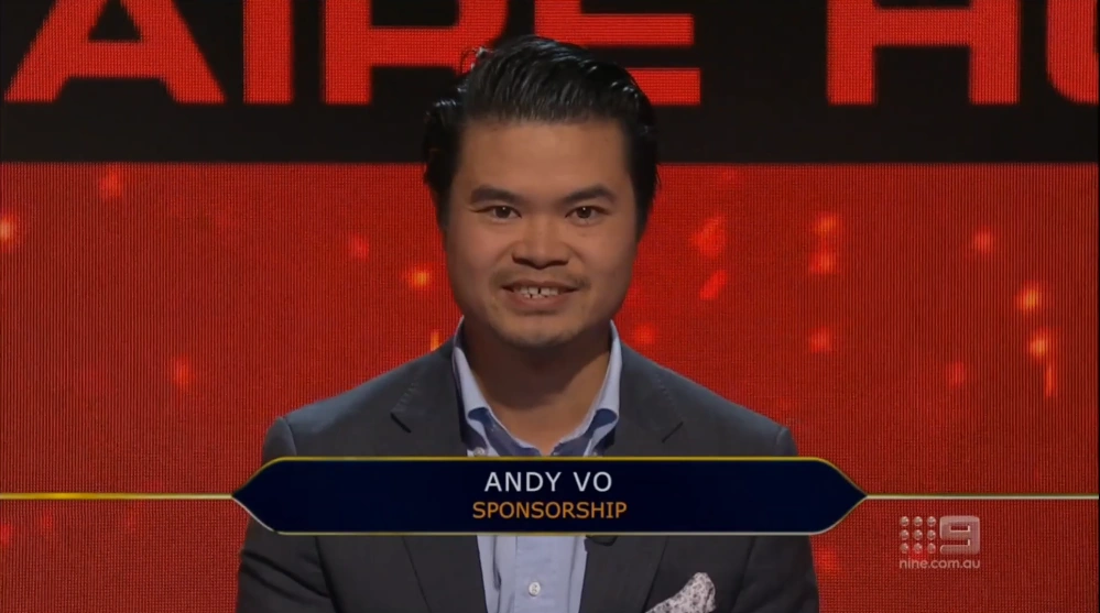 Andy Vo , was contestant, appeared on the 2022 season of Millionaire Hot Seat on 15th August 2022 and won AU$1,000, thanks to winning Fastest Finger First and fortunately did not spend it during the hot seat round.
