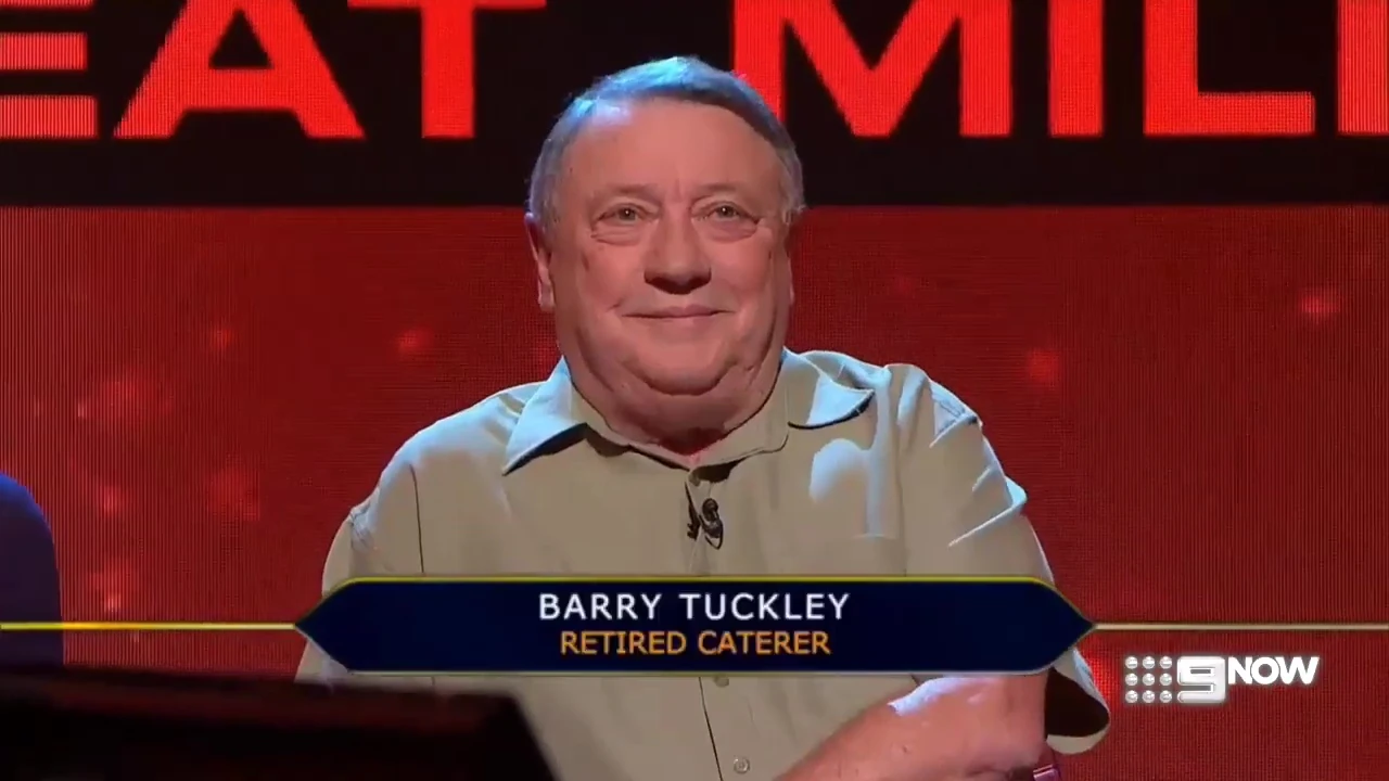 Barry Tuckley, was contestant, appeared on the 2019 season of Millionaire Hot Seat on 17th July 2019 and won AU$1,000.