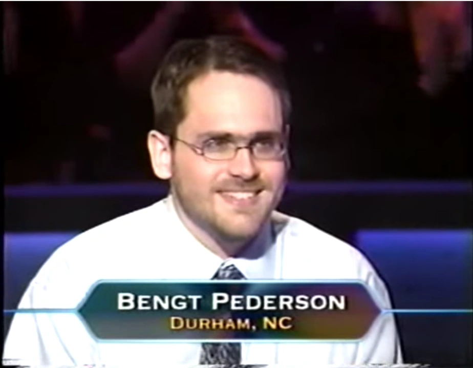 Bengt Pederson is a software tester from Durham, North Carolina. He appeared as a contestant on Super Millionaire and won $100,000 after incorrectly answering his $500,000 question.