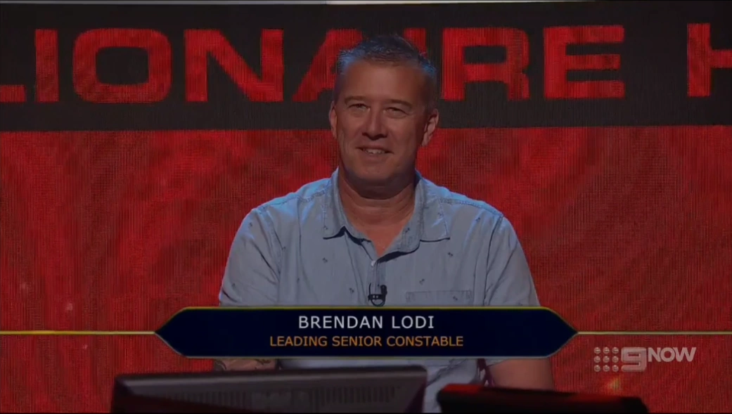 Brendan Lodi, was contestant, appeared on the 2021 season of Millionaire Hot Seat on 5th October 2021 and won AU$1,000, thanks to winning Fastest Finger First and fortunately did not use it to exchange for lifelines during the Hot Seat round, despite not being the one who got to answer the last question.