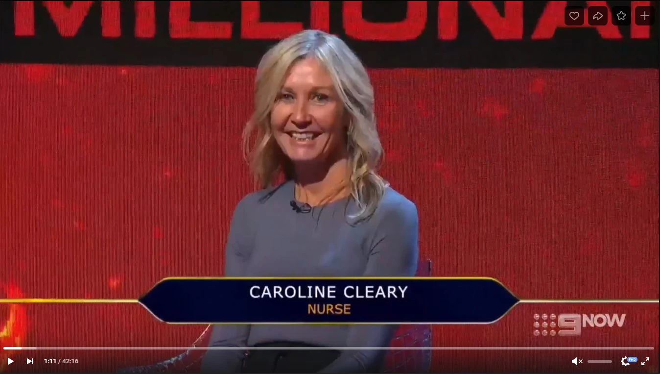 Caroline Cleary, was contestant, appeared on the 2023 season of Millionaire Hot Seat on September 27, 2023 and won AU$1,000.