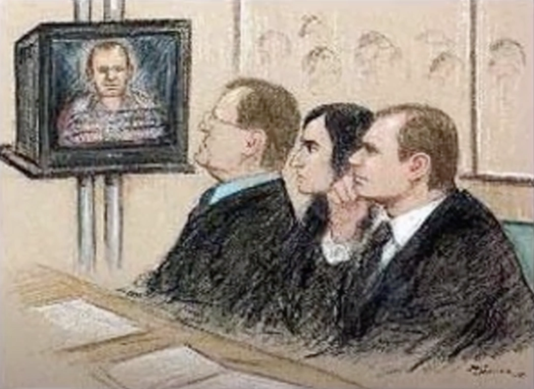 Artist illustration of the Ingrams and Tecwen Whittock in court for the trial