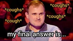 "You're supposed to cough after the question's been answered!"