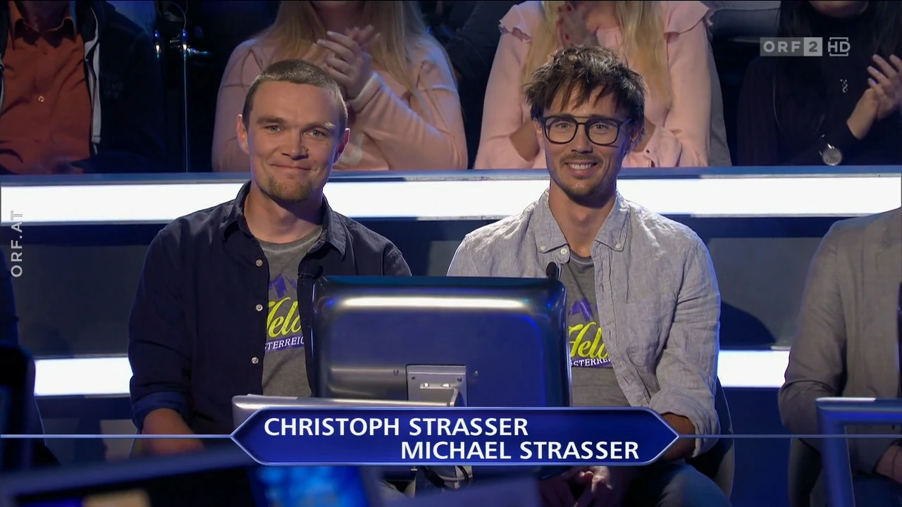 Christoph and Michael Strasser were celebrity contestants, who appeared on an special episode of Die Millionenshow on October 21, 2019 and won €25.000.
