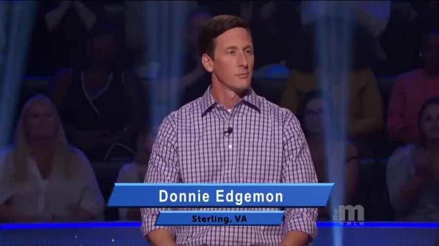 Donnie admits he doesn't know a lot about music history. Maybe his Plus One, Trent Edwards, does. Trent thinks it's B or D but isn't sure. The 50:50 is then utilized, leaving B and C. Trent did see the Woodstock documentary, but can't remember the names John Davis and Brad Howell. Despite this, Donnie is willing to take a stab and says C: Organized Woodstock music festival. Sadly, B: Provided Milli Vanilli's singing voices was right the whole time.