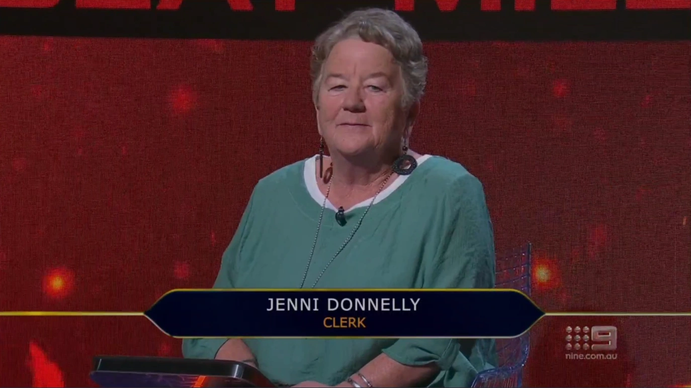 Jenni Donnelly , was contestant, appeared on the 2022 season of Millionaire Hot Seat on 6th June 2022 and won AU$1,000, thanks to winning Fastest Finger First and fortunately did not spend it during the hot seat round.