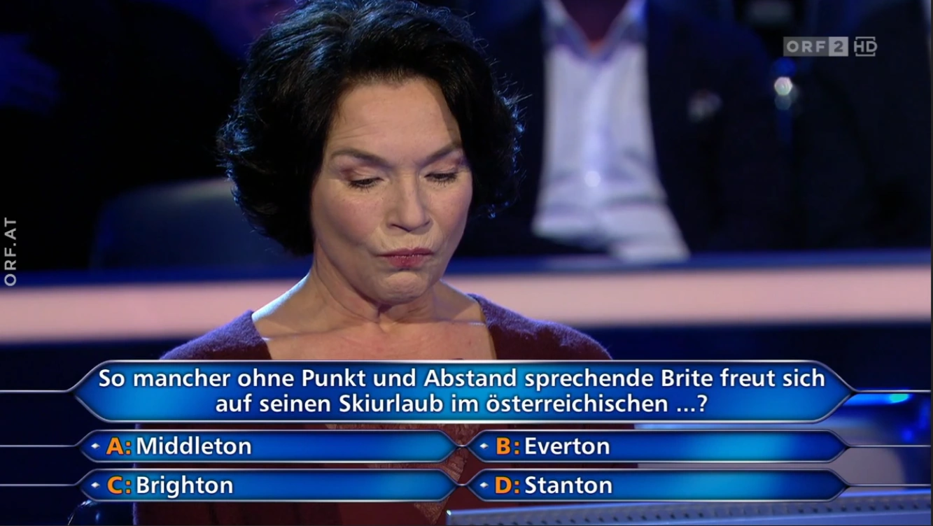Julia Stemberger was celebrity contestant, who appeared on an Promi Special episode of Die Millionenshow on November 28, 2022 and won the top prize of €75.000.