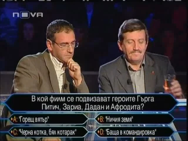 | In which film are the heroes Grga Pitić, Zarije, Dadan and Afrodita? "Ask the Audience" and "50:50" lifelines used | |