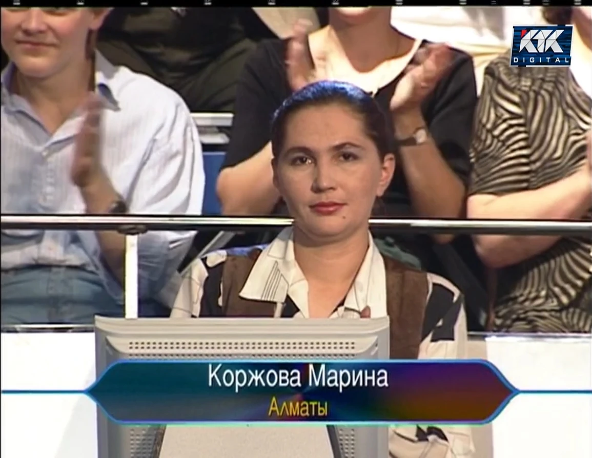 Marina Korzhova, from Almaty, was a contestant appeared on the Season 1 of Кто возьмёт миллион?, on June 23, 2001. She won 20.000 тнг.