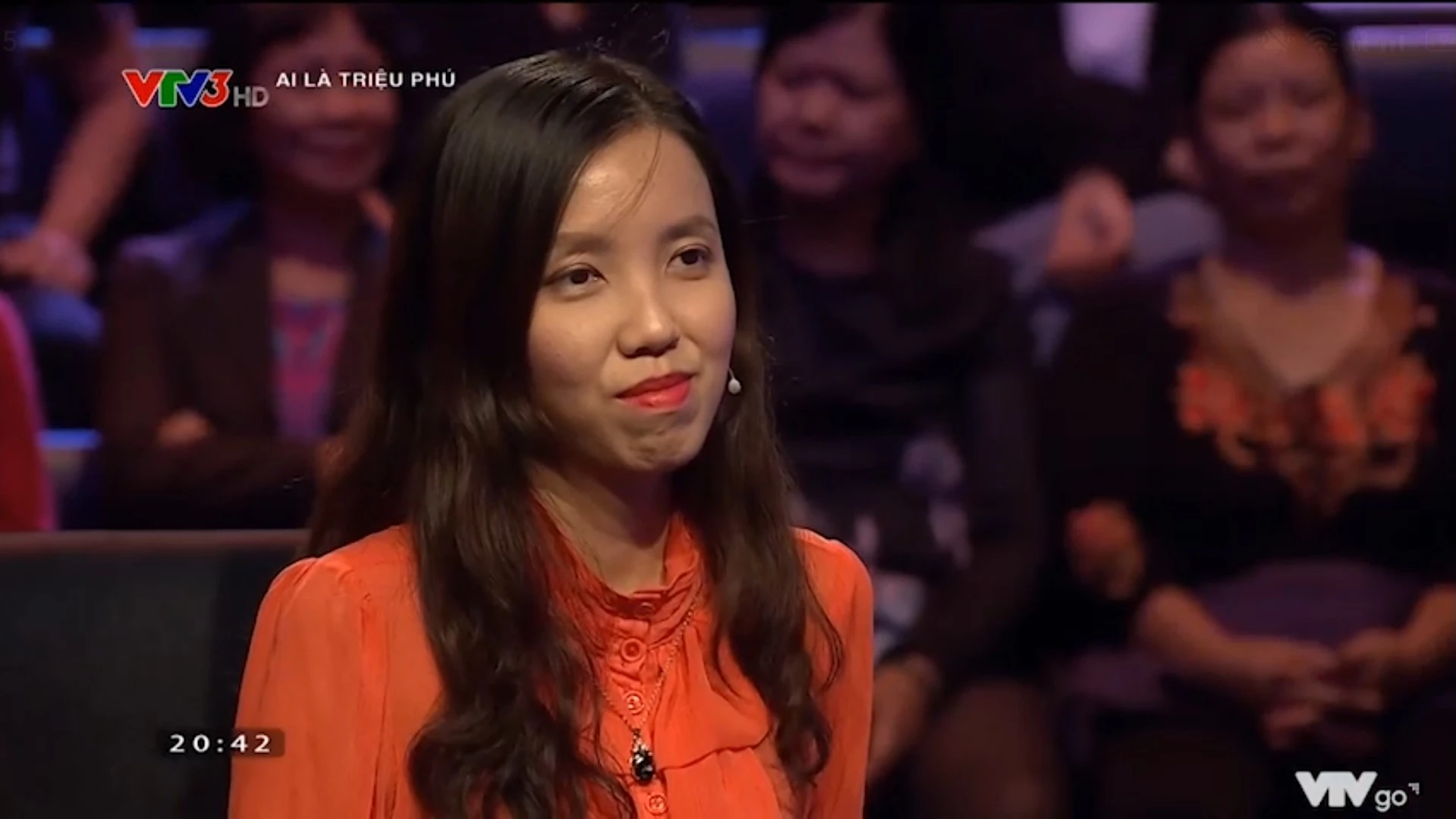 Nguyễn Kiều Ngân, was a contestant appeared on Ai Là Triệu Phú on December 22, 2020. She walked away at the 10th question and won ₫14,000,000.