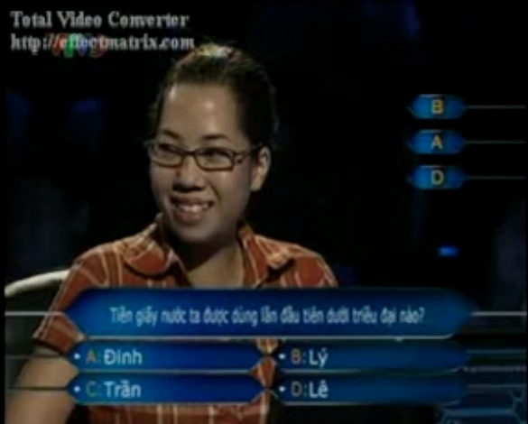 Nguyễn Thùy Trang, a college teacher from Lạng Sơn, was a contestant in Ai Là Triệu Phú on September 2009 and won ₫1,000,000, after answering her 9th question incorrectly, lost ₫5,000,000.