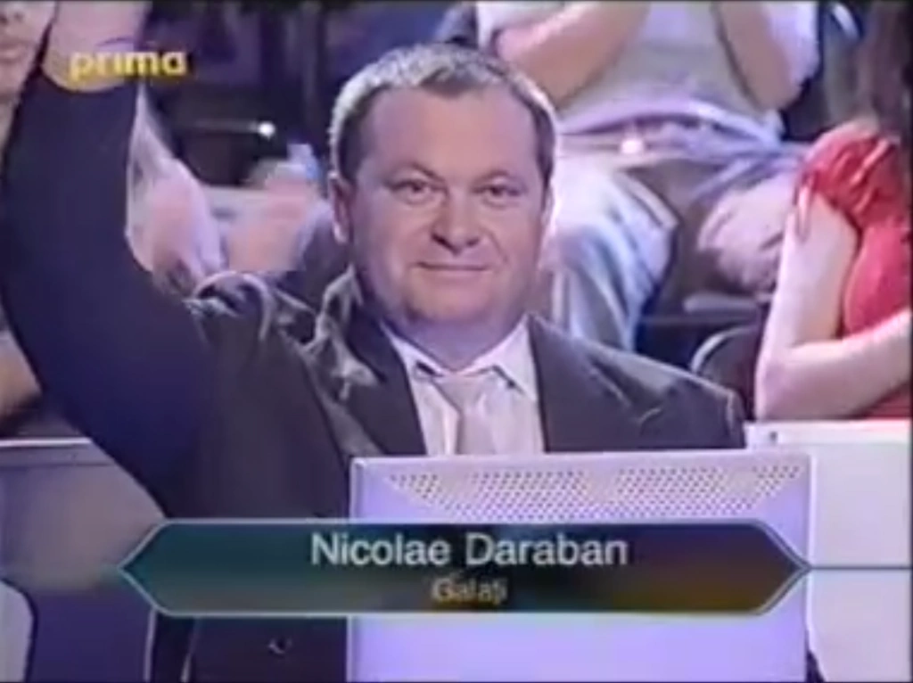Nicolae Daraban, from Galați, appeared as a contestant twice on Vrei să fii miliardar?, the first Romanian version of Who Wants to Be a Millionaire?. In his first game, he left with 5.000.000 lei on Series 2 in November 2001. He reappeared on Series 5 on the final episode, broadcast on July 1, 2003, as the very last contestant of the show, winning 125.000.000 lei.